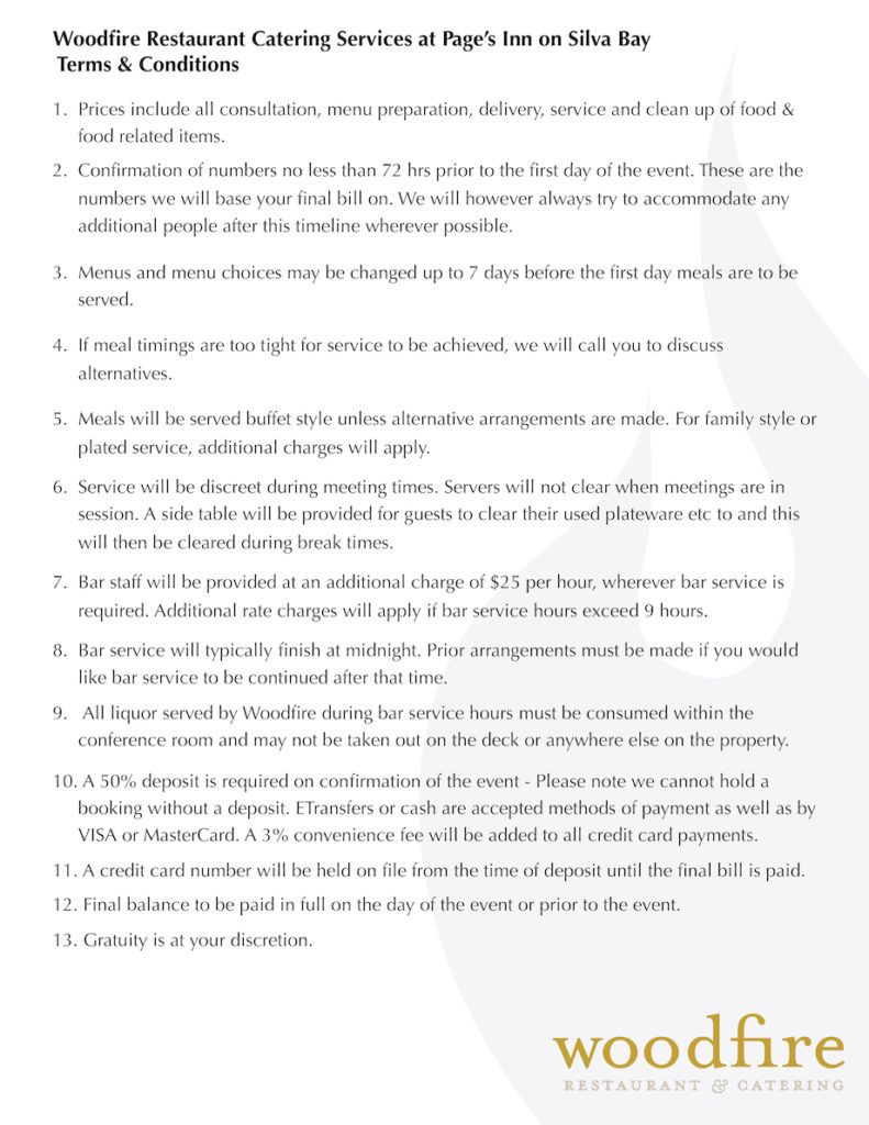 Catering Document Terms & Conditions Page’s Inn