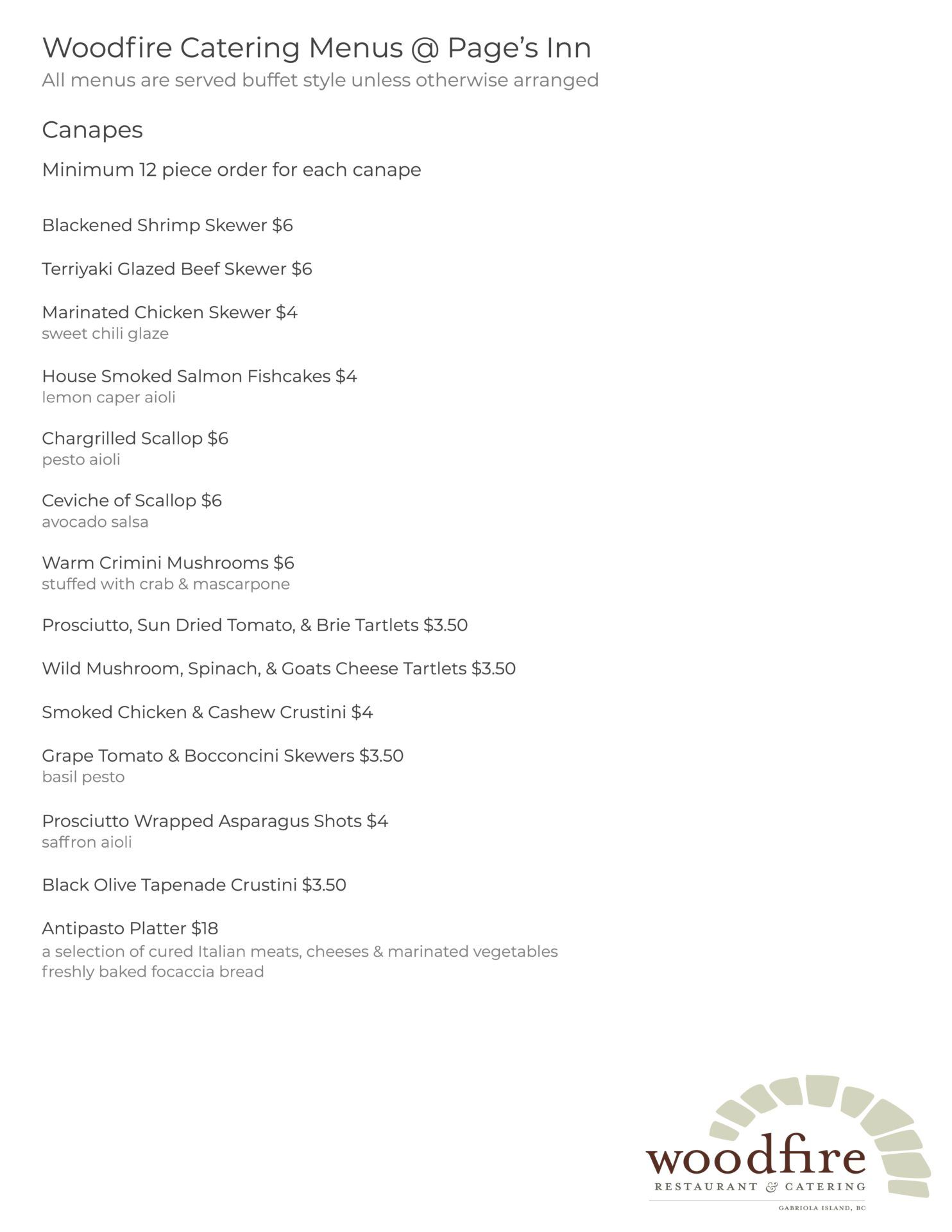 Page’s Menus 2023 CANAPES